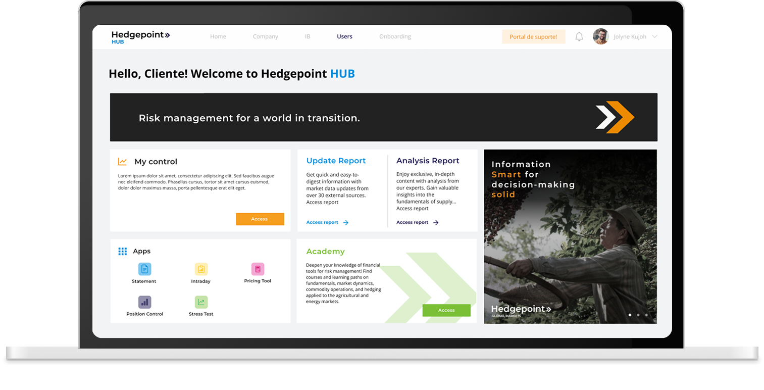Hedgepoint HUB is a digital platform that integrates market intelligence and specialized educational content on risk management and derivatives for the agricultural and energy commodities sector.