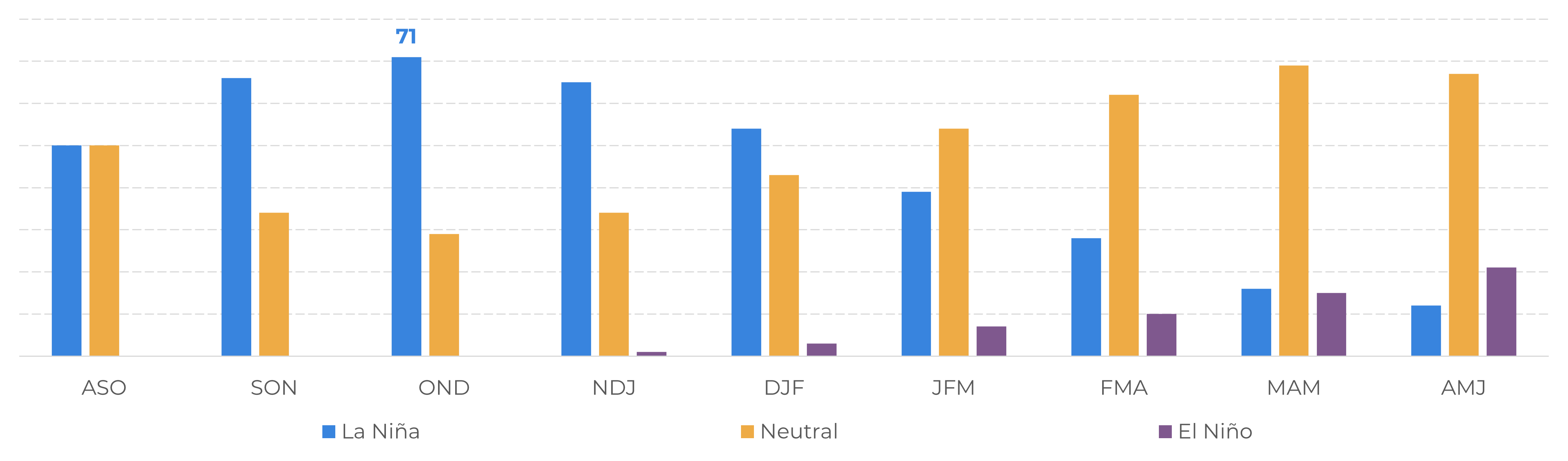 - The U.S. CPC raised the probability of a La Niña transition in October–December to 71%. La Niña can bring relatively higher humidity and milder temperatures to West Africa, and reduce rainfall along Ecuador’s coast, which warrants attention to soil moisture and pod filling.