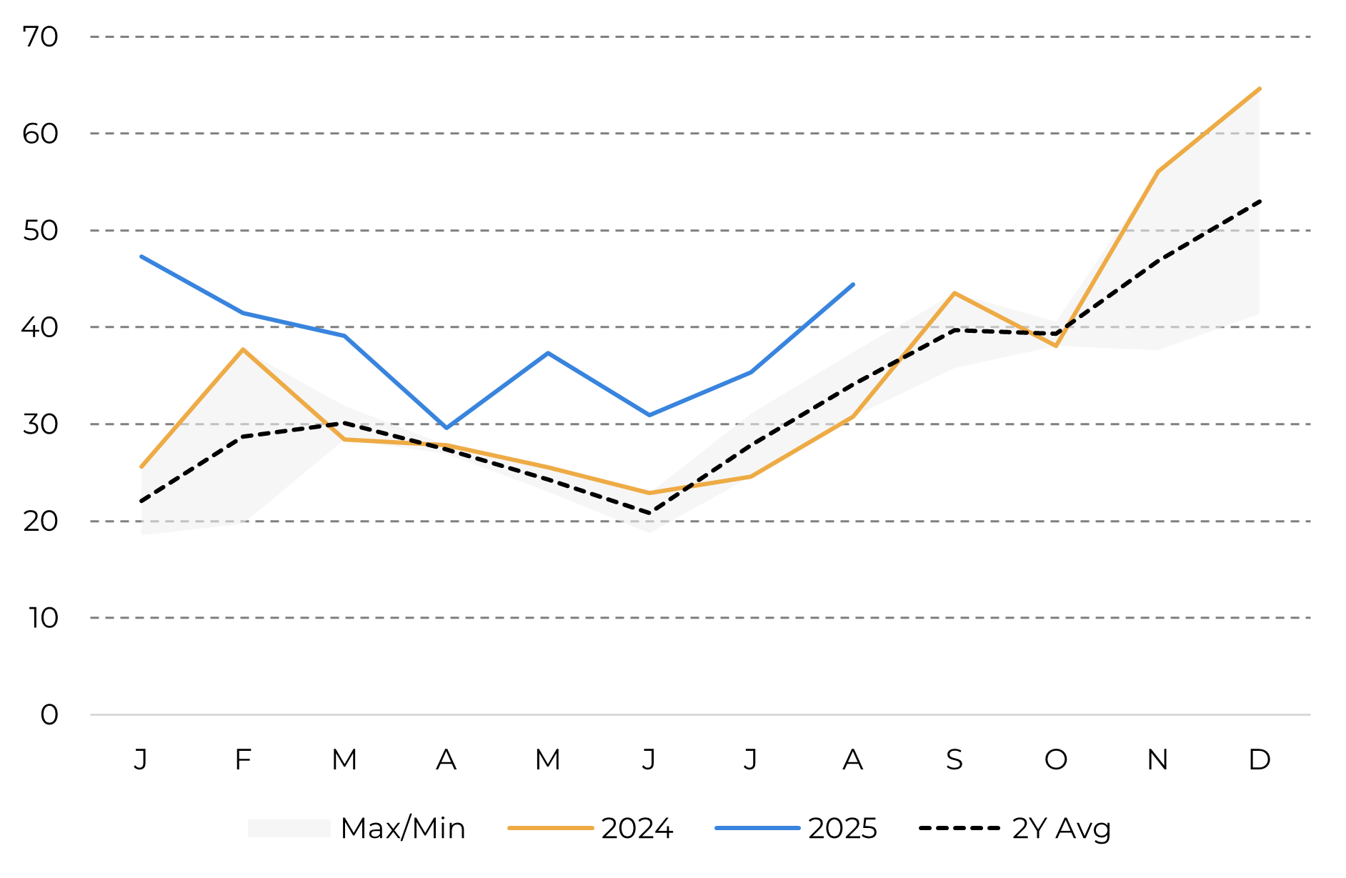 - Even so, the market continues to operate in an environment of high sensitivity to weather, financial, and logistical variables, which keeps volatility high despite the improvement in the global balance.