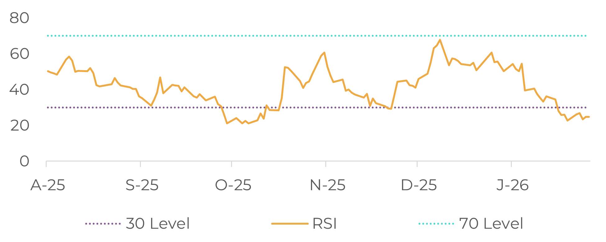 The grinding data already released confirm a weakened consumption environment in the main processing regions, with the relative exception of the North American market. In this context, the market is closely monitoring the release of financial results from major processors and chocolate manufacturers, with particular attention to the behavior of sales volumes, which may bring additional volatility in the short term, especially in a scenario where technical indicators, such as the RSI, remain in oversold territory.