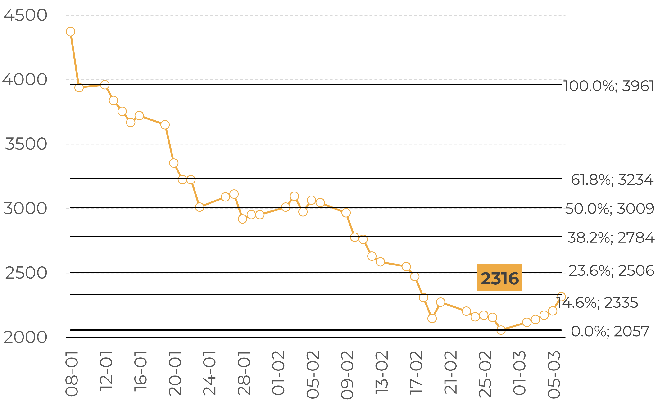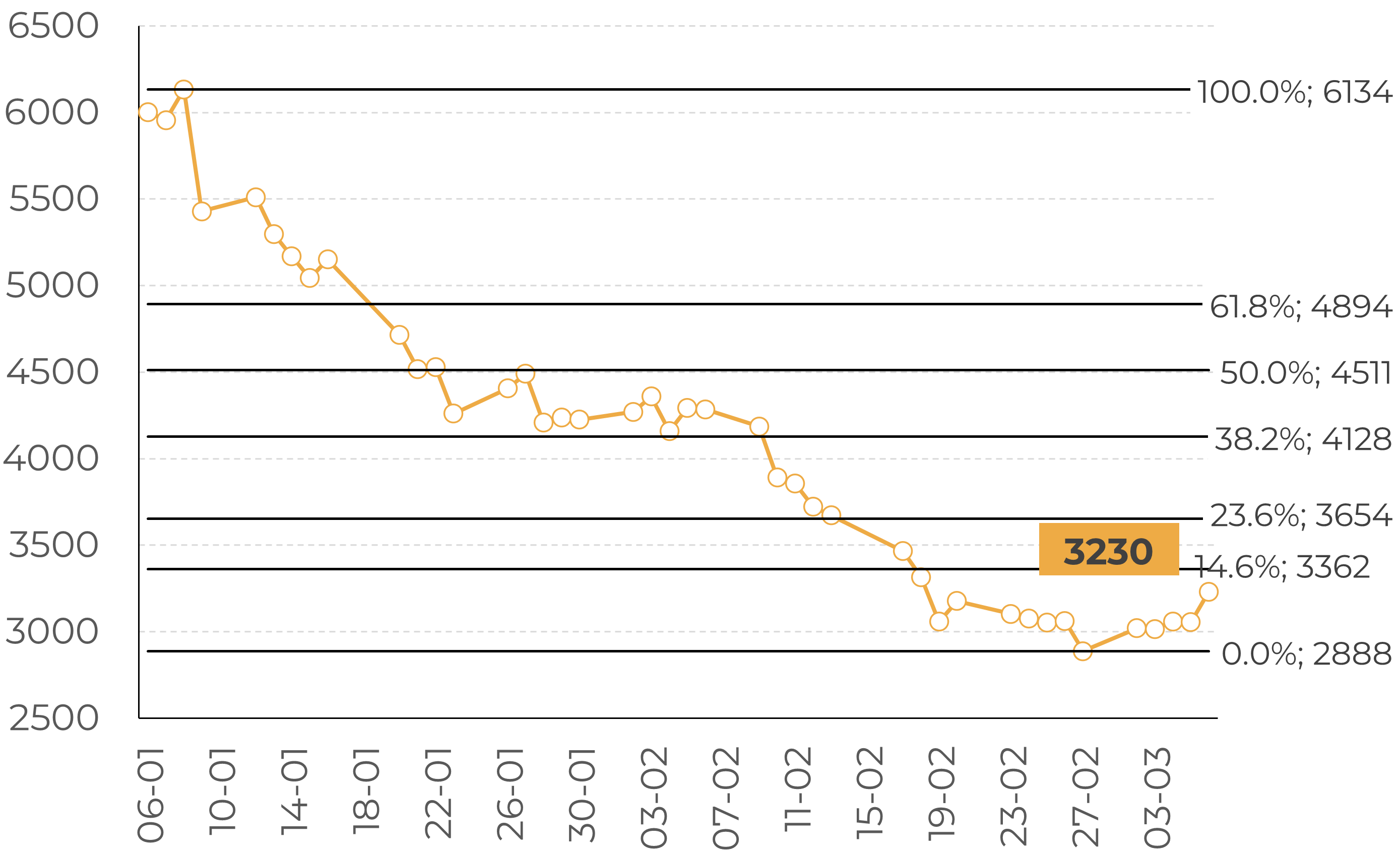 Cocoa – New York May 26: Fibonacci retracement levels (USD/t)