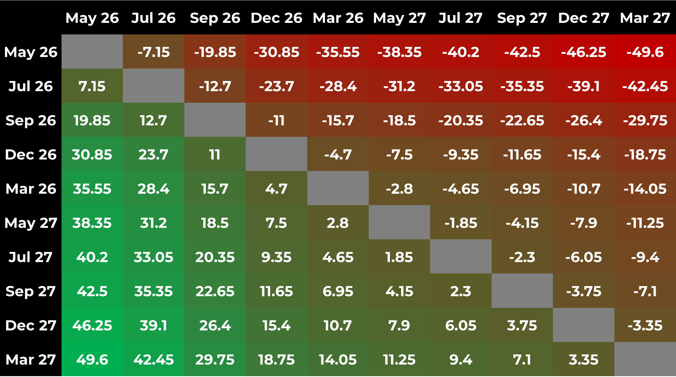 Arabica: Spread Matrix (c/lb)