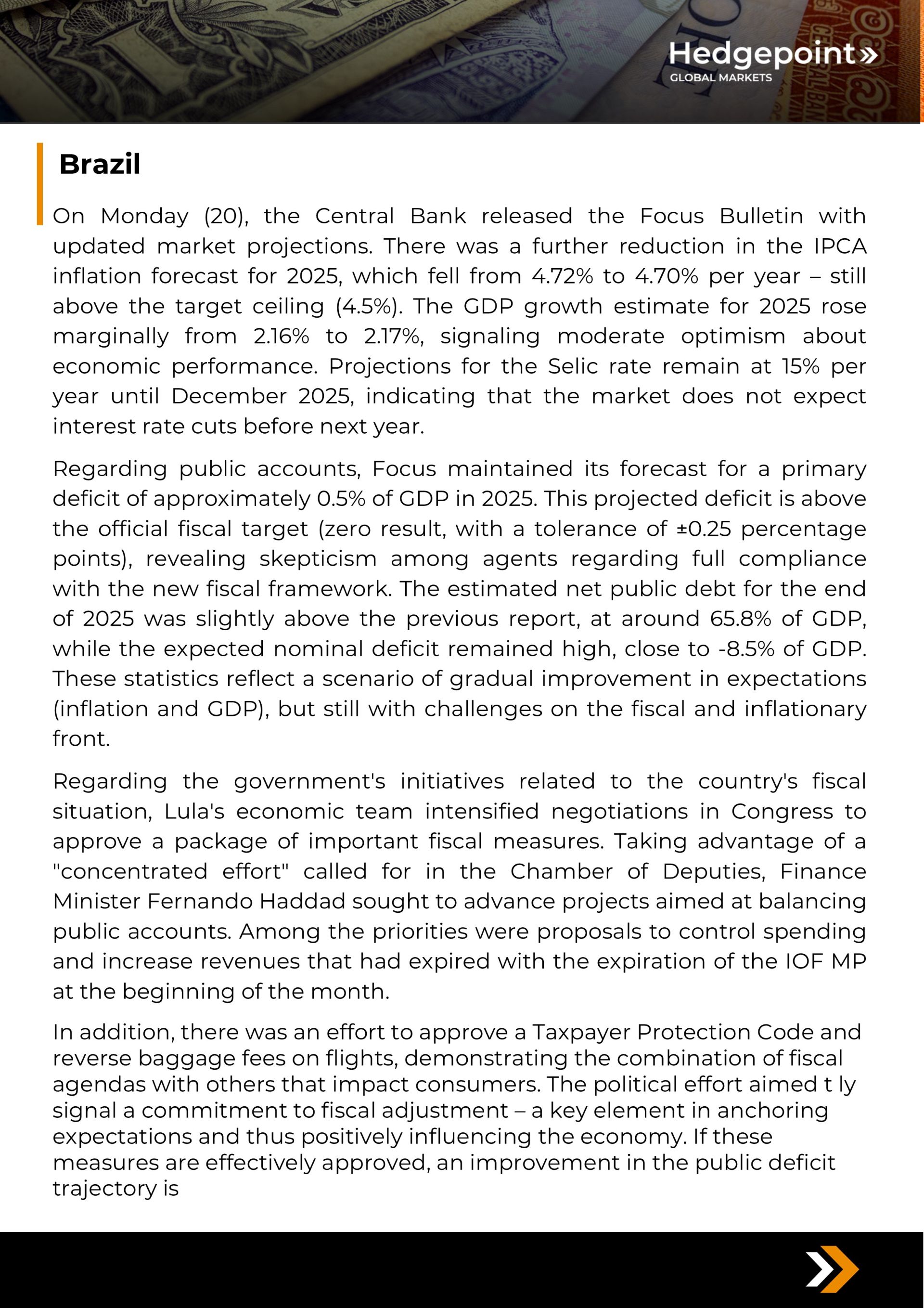 This document has been prepared by Hedgepoint Schweiz AG and its affiliates (“Hedgepoint”) solely for informational and instructional purposes, without intending to create obligations or commitments to third parties. It is not intended to promote or solicit an offer for the sale or purchase of any securities, commodities interests, or investment products. Hedgepoint and its associates expressly disclaim any liability for the use of the information contained herein that directly or indirectly results in any kind of damages. Information is obtained from sources which we believe to be reliable, but we do not warrant or guarantee the timeliness or accuracy of this information. The trading of commodities interests, such as futures, options, and swaps, involves substantial risk of loss and may not be suitable for all investors. You should carefully consider wither such trading is suitable for you in light of your financial condition. Past performance is not necessarily indicative of future results. Customers should rely on their own independent judgment and/or consult advisors before entering into any transactions. Hedgepoint does not provide legal, tax or accounting advice and you are responsible for seeking any such advice separately. Hedgepoint Schweiz AG is organized, incorporated, and existing under the laws of Switzerland, is filiated to ARIF, the Association Romande des Intermédiaires Financiers, which is a FINMA-authorized Self-Regulatory Organization. Hedgepoint Commodities LLC is organized, incorporated, and existing under the laws of the USA, and is authorized and regulated by the Commodity Futures Trading Commission (CFTC) and a member of the National Futures Association (NFA) to act as an Introducing Broker and Commodity Trading Advisor. HedgePoint Global Markets Limited is Regulated by the Dubai Financial Services Authority. The content is directed at Professional Clients and not Retail Clients. Hedgepoint Global Markets PTE. Ltd is organized, incorporated, and existing under the laws of Singapore, exempted from obtaining a financial services license as per the Second Schedule of the Securities and Futures (Licensing and Conduct of Business) Act, by the Monetary Authority of Singapore (MAS). Hedgepoint Global Markets DTVM Ltda. is authorized and regulated in Brazil by the Central Bank of Brazil (BCB) and the Brazilian Securities Commission (CVM). Hedgepoint Serviços Ltda. is organized, incorporated, and existing under the laws of Brazil. Hedgepoint Global Markets S.A. is organized, incorporated, and existing under the laws of Uruguay. In case of questions not resolved by the first instance of customer contact (client.services@Hedgepointglobal.com), please contact internal ombudsman channel (ombudsman@hedgepointglobal.com – global or ouvidoria@hedgepointglobal.com – Brazil only) or call 0800-8788408 (Brazil only). Integrity, ethics, and transparency are values that guide our culture. To further strengthen our practices, Hedgepoint has a whistleblower channel for employees and third-parties by e-mail ethicline@hedgepointglobal.com or forms Ethic Line – Hedgepoint Global Markets. “HedgePoint” and the “HedgePoint” logo are marks for the exclusive use of HedgePoint and/or its affiliates. Use or reproduction is prohibited, unless expressly authorized by HedgePoint. Furthermore, the use of any other marks in this document has been authorized for identification purposes only. It does not, therefore, imply any rights of HedgePoint in these marks or imply endorsement, association or seal by the owners of these marks with HedgePoint or its affiliates.