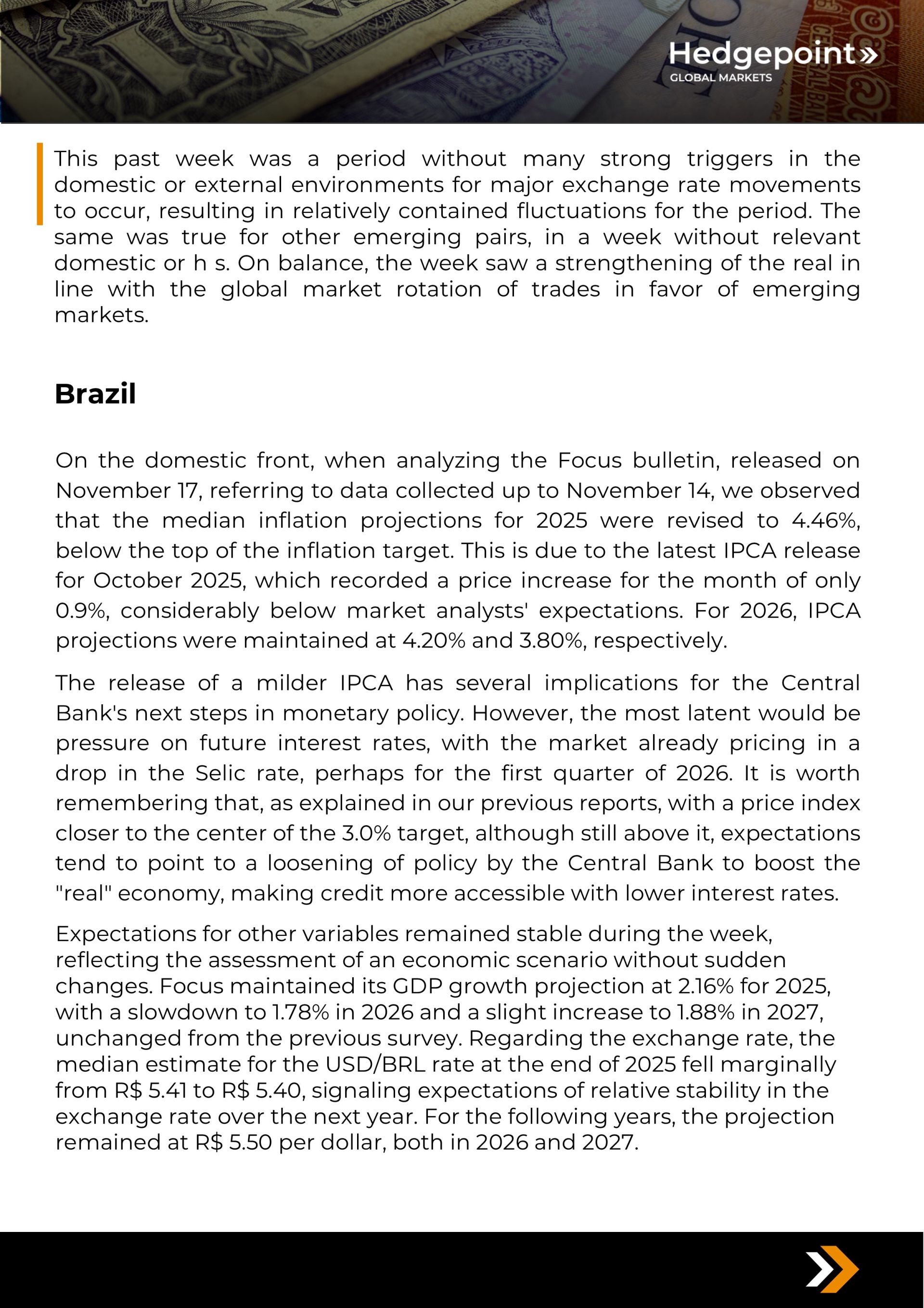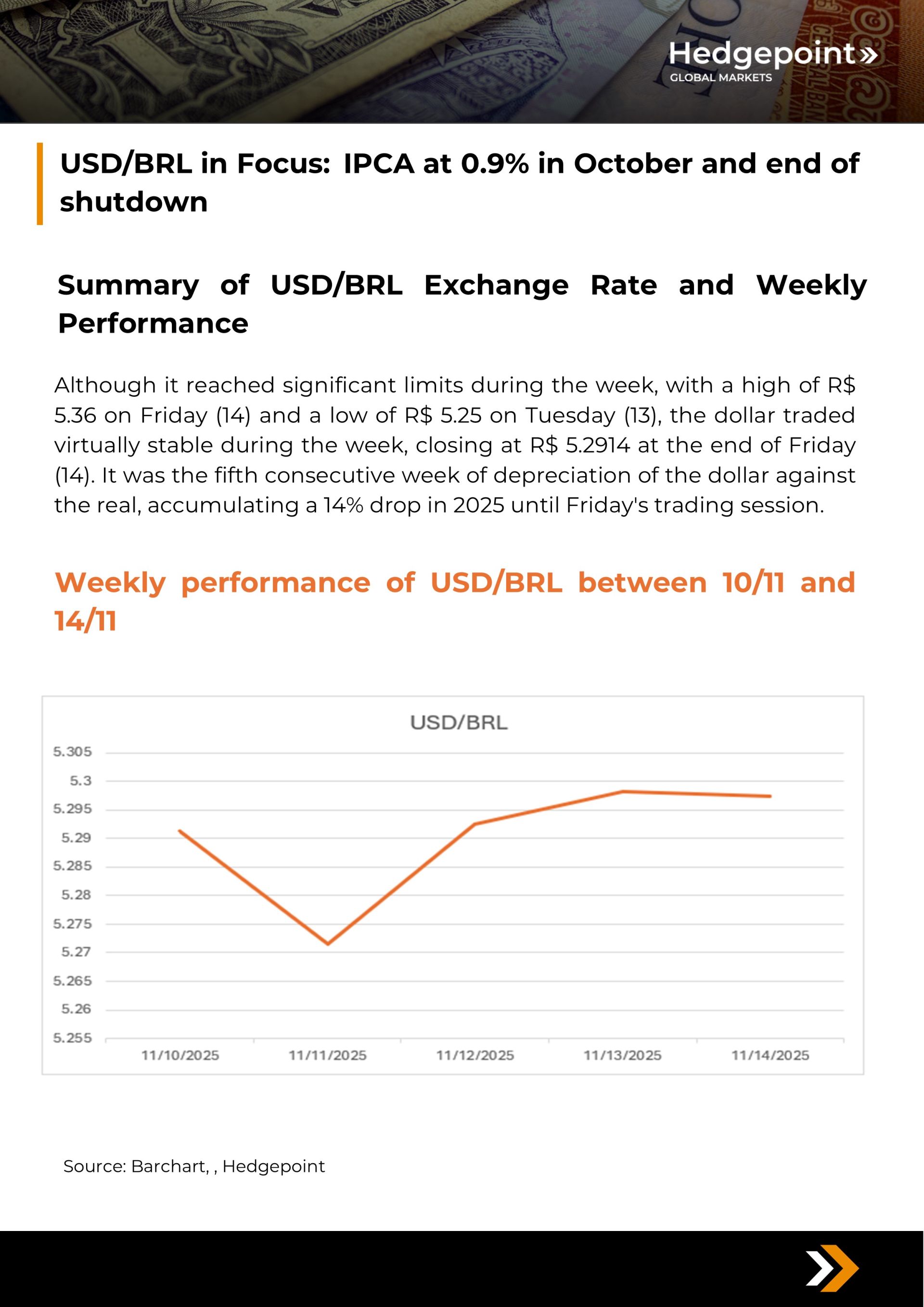 USD/BRL in Focus:IPCA at 0.9% in October and end of shutdown