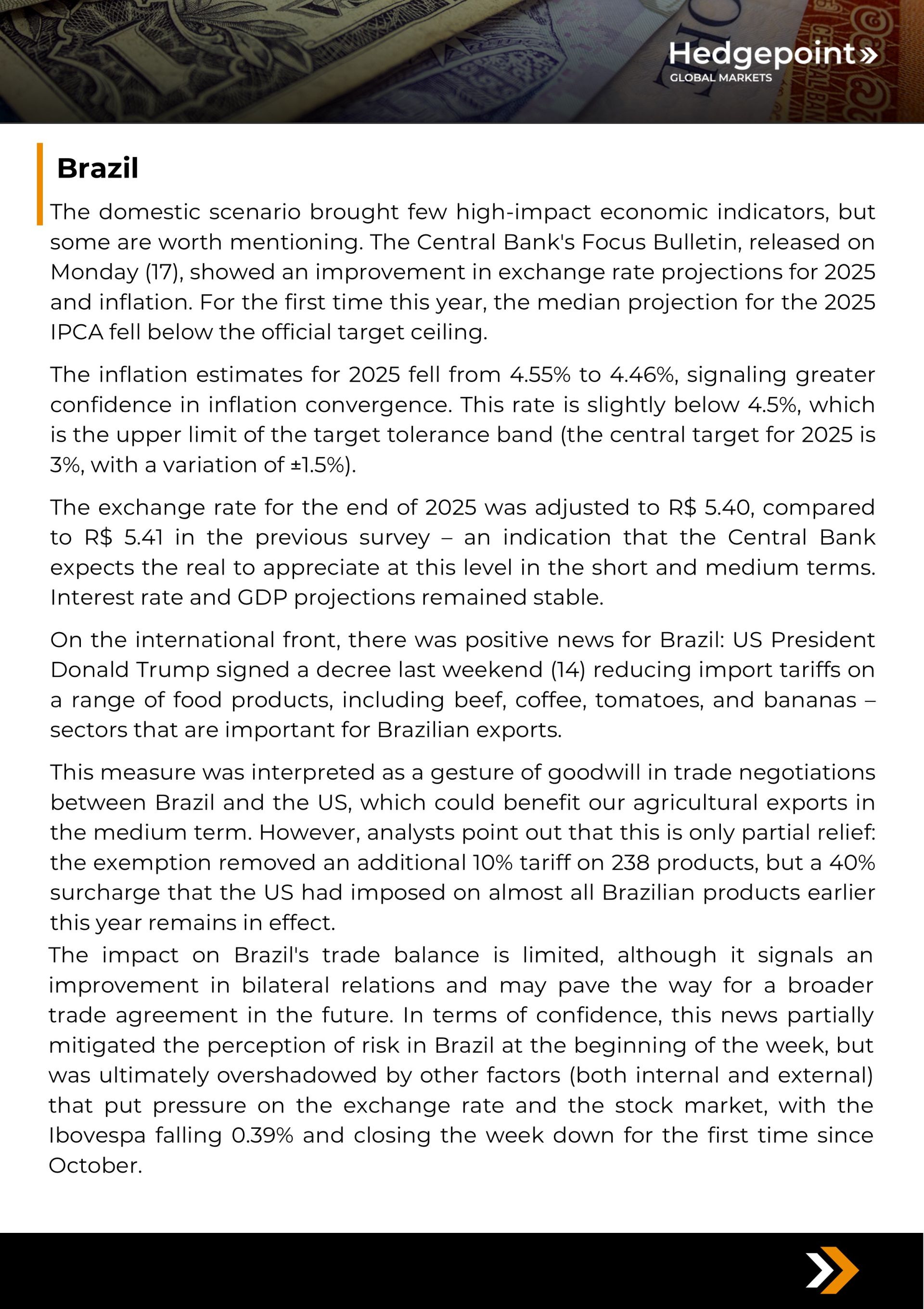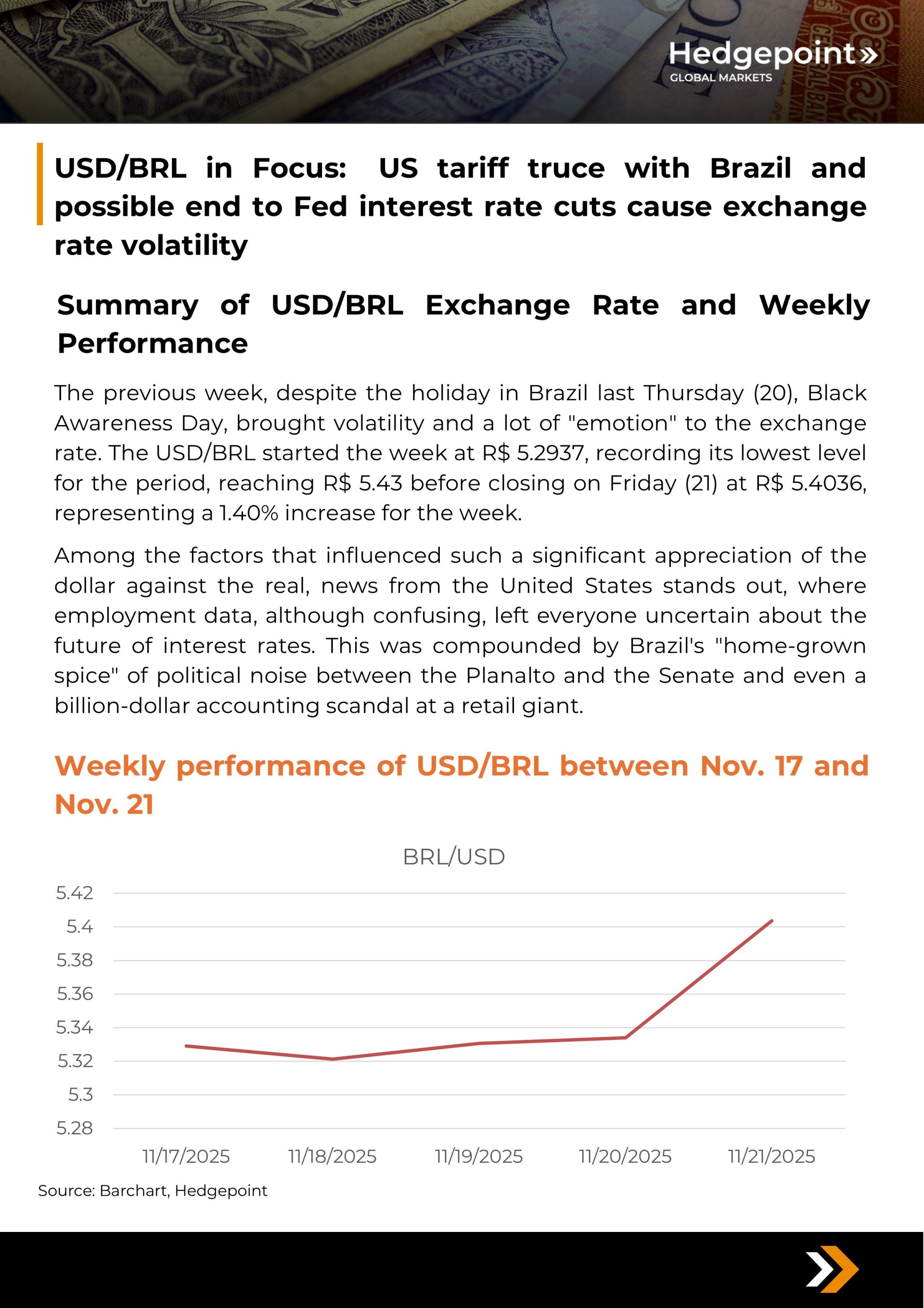 USD/BRL in Focus: US tariff truce with Brazil and possible end to Fed interest rate cuts cause exchange rate volatility