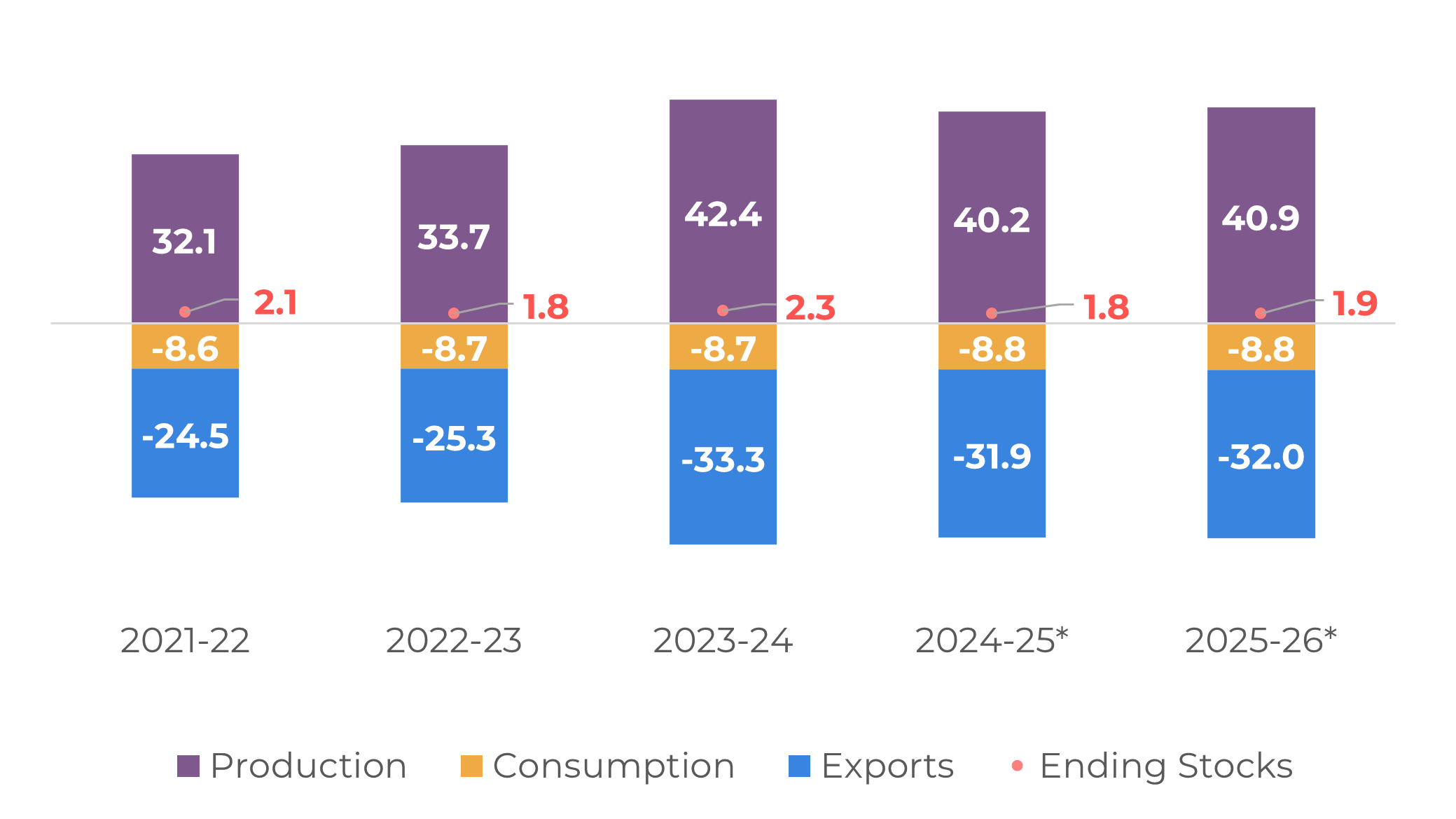 - Beyond Brazil, the Northen Hemisphere is also set to have a good output in 25/26, due to better weather conditions, especially in India.