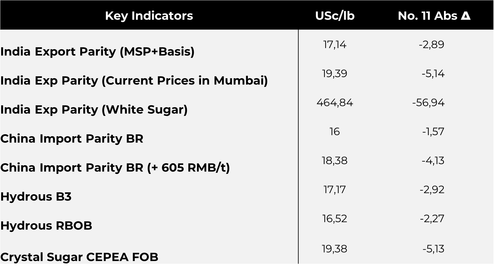 - Part of the surplus expected is due to a good performance from Brazil’s Center South region in the second half of the crop. So far, cumulative sugar production for the current cycle has already exceeded that of the previous one.