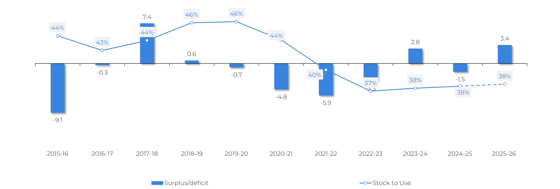 - Global supply recovery, India, Mexico, Thailand, China, U.S., EU, adds to the surplus, while the EU–Mercosur deal may slightly increase competitive pressures and expand ethanol opportunities for Brazil.