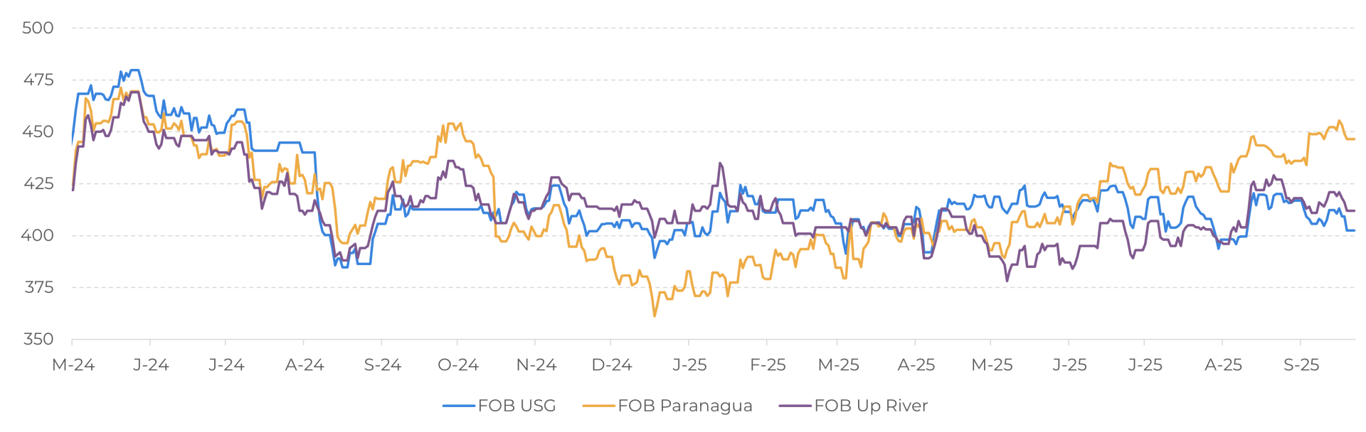 Soybean - FOB Prices - Main Origins - in USD/ton