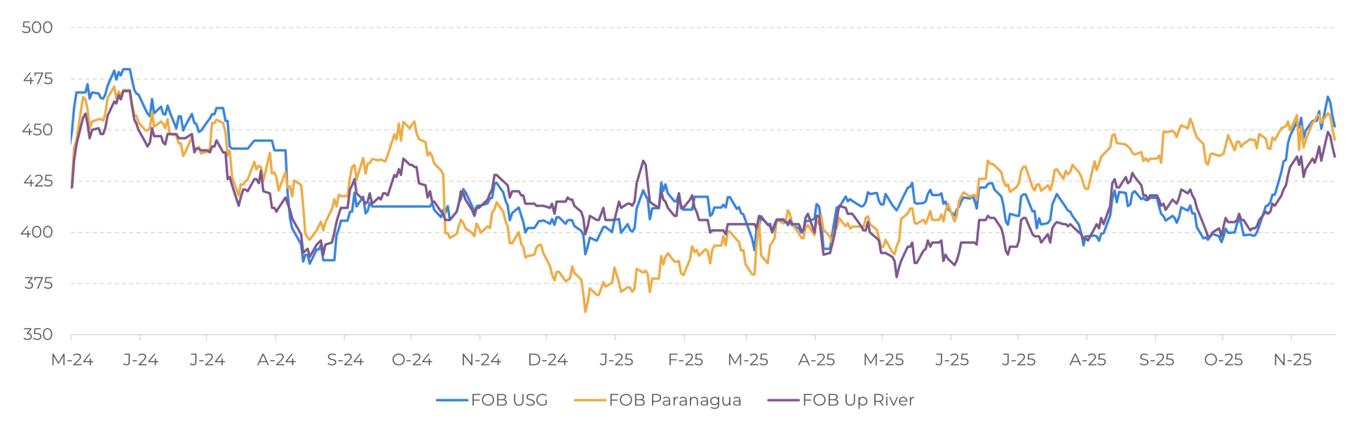 Soybean - FOB Prices - Main Origins - in USD/ton